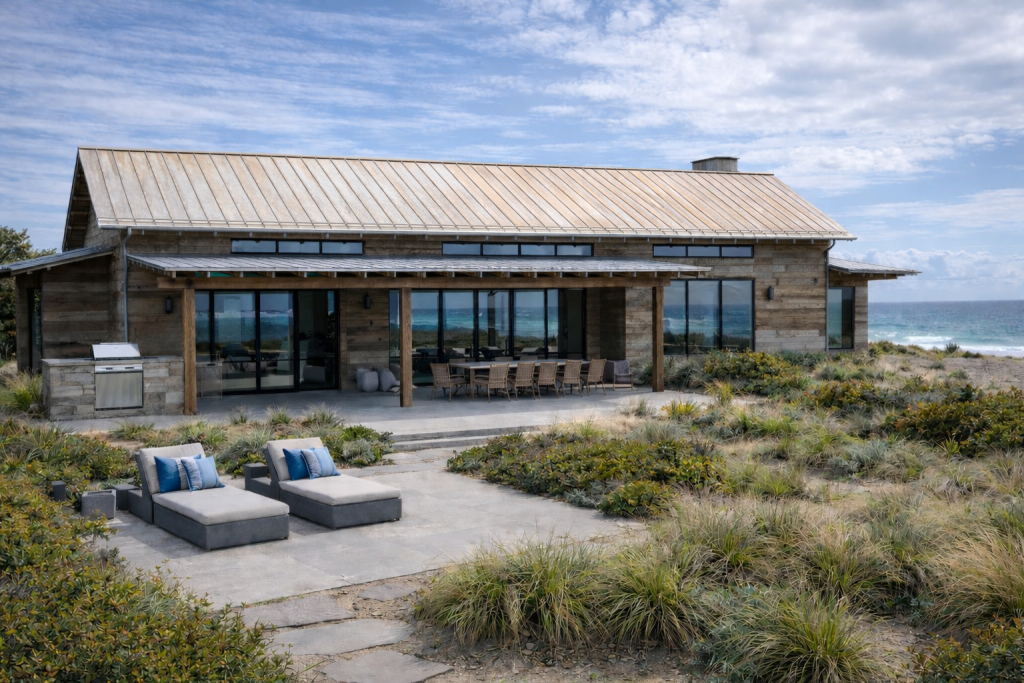 Stainless steel roofs, such as Roofinox HFX, are chosen for durability, strength, and longevity—especially in coastal environments where salt air, wind, and humidity are part of everyday weather. Roofinox stainless steel is designed to last for generations with minimal maintenance and is backed by decades of real-world warranty and performance globally roofinox.com.